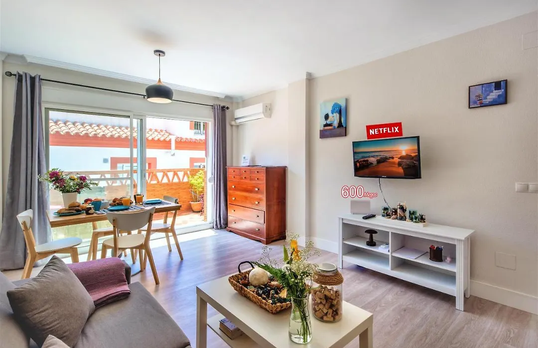 Este apartamento de 70 m^2, Las Mimosas, familias y parejas - con terraza y parking!, se encuentra a una distancia de 450 metros de la Plaza de España y ofrece a sus huéspedes solárium. El apartamento está ubicado a 6 km de Los Boliches y a 5 km del Ermita de la Virgen de la Peña.